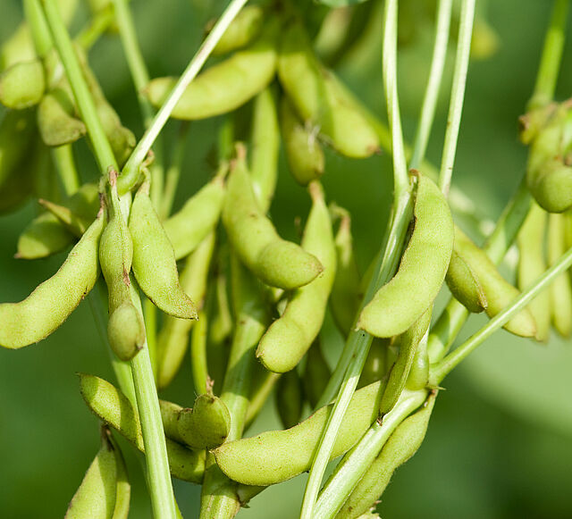 La soja o soya (Glycine max) es una leguminosa oriunda del este de Asia. Se cultiva extensamente por sus granos comestibles.