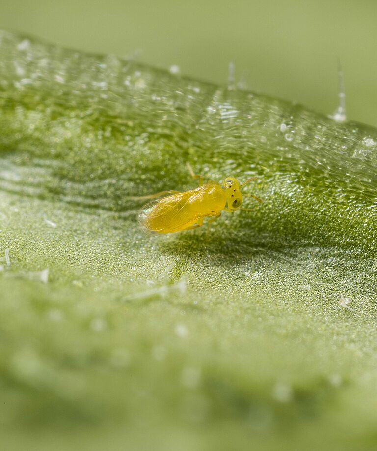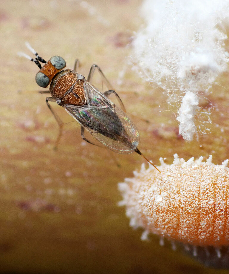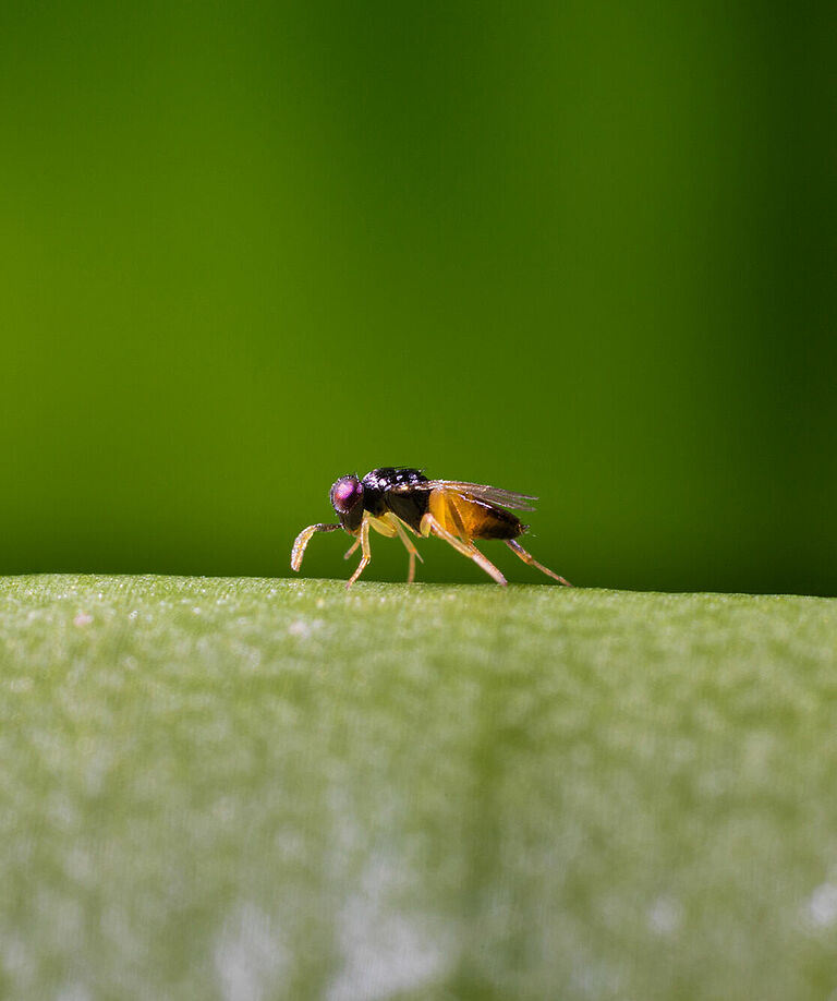 Las avispas parásitas son pequeños insectos que desempeñan un papel crucial en el control natural de plagas. Se llaman "parásitas" porque ponen sus huevos dentro o sobre insectos dañinos. Las larvas de estas avispas parasitarias se desarrollan en el interior del insecto huésped y acaban matándolo.